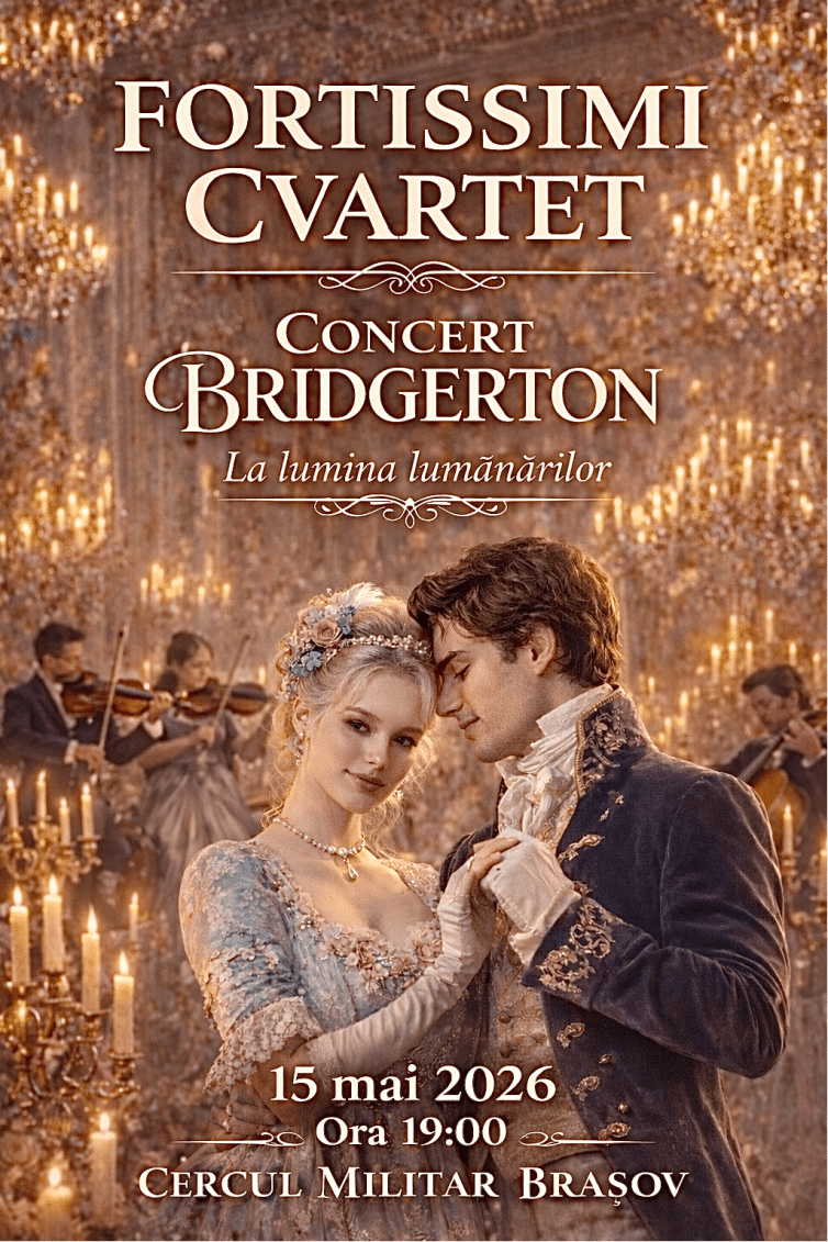 Cvartet Fortissimi vă invită la un nou concert din seria Fortissimi Concerts, inspirat din universul fascinant al Bridgerton — o lume a eleganței, romantismului și pasiunii, unde muzica spune povești care ajung direct la suflet.