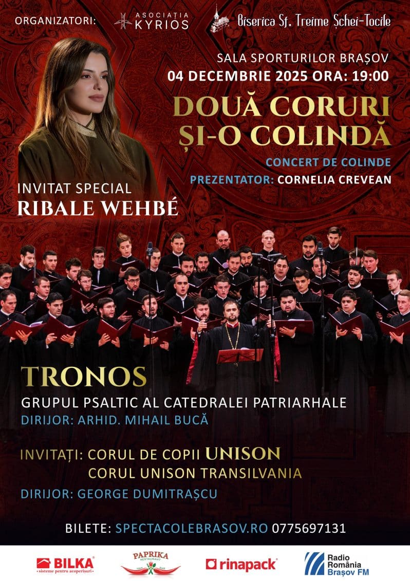 Evenimentul, organizat de Asociația Kyrios și Biserica Ortodoxă „Sfânta Treime” – Tocile, propune o seară de rugăciune cântată, de armonie și comuniune. Într-o lume grăbită, concertul „Două Coruri și-o Colindă” devine o clipă de răgaz, o chemare la unitate, la simplitate și lumină.