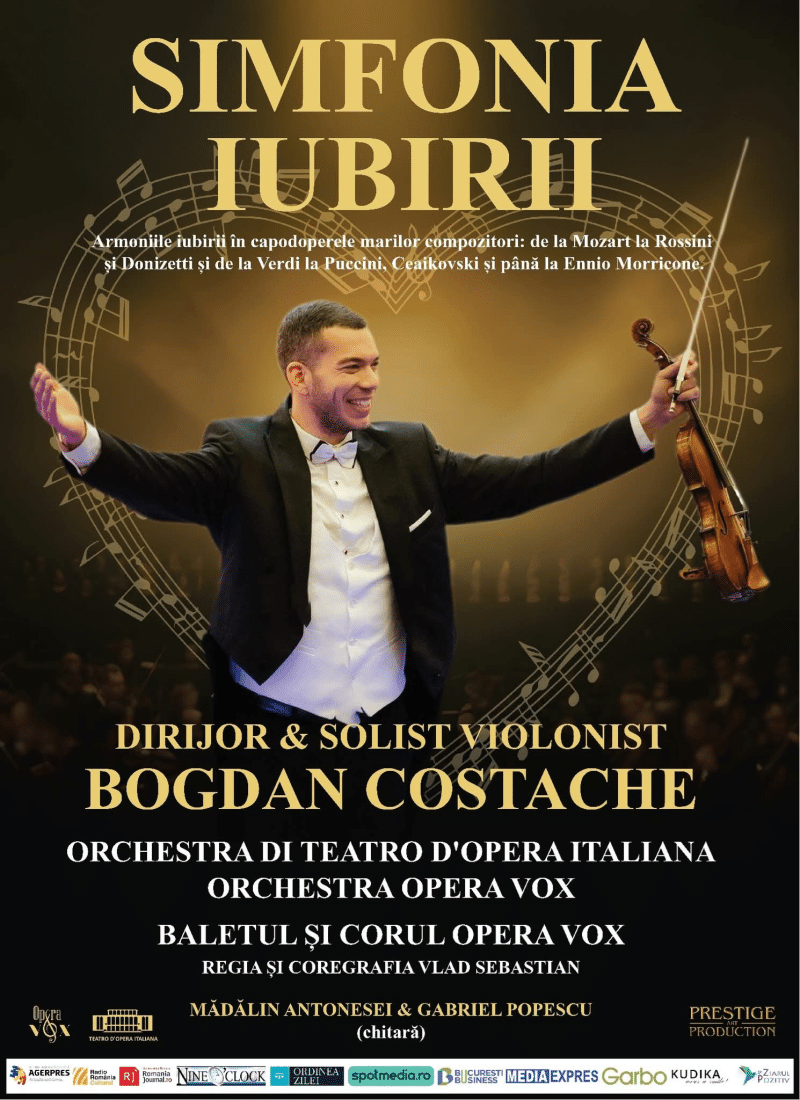 Vă invităm la un spectacol grandios în care Orchestra di Teatro d’Opera Italiana, Orchestra Opera Vox, Baletul și Corul Opera Vox, alături de dirijorul și solistul violonist Bogdan Costache, se împletesc într-o experiență artistică unică.